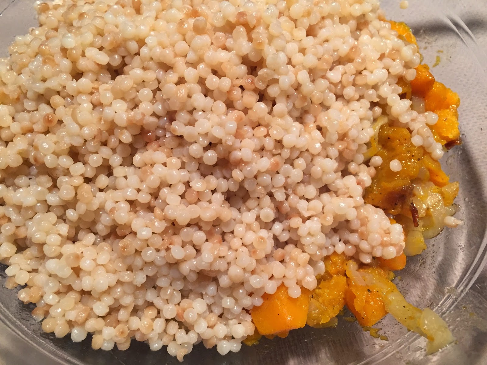 I used butternut squash stock to cook the couscous instead of water. Once cooked, I added the couscous to the roasted butternut squash and onions in a large bowl...